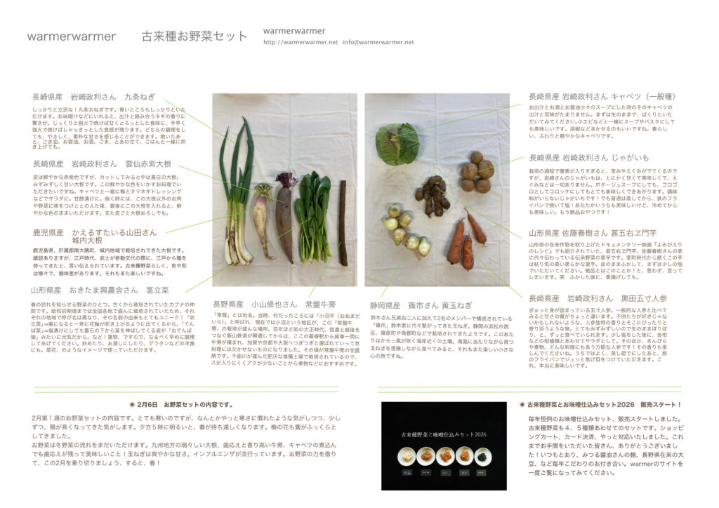 2月第1週のお野菜セットの内容です。
