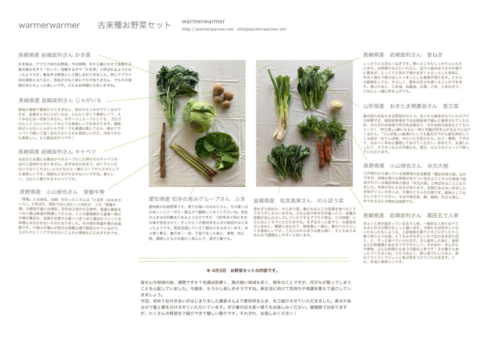 4月3日 お野菜セットの内容です